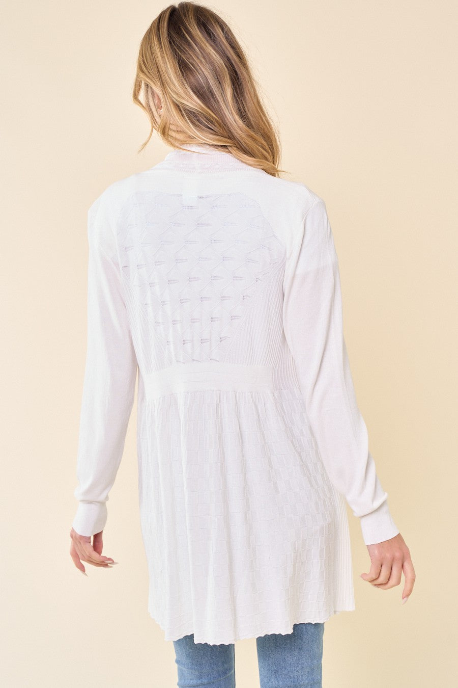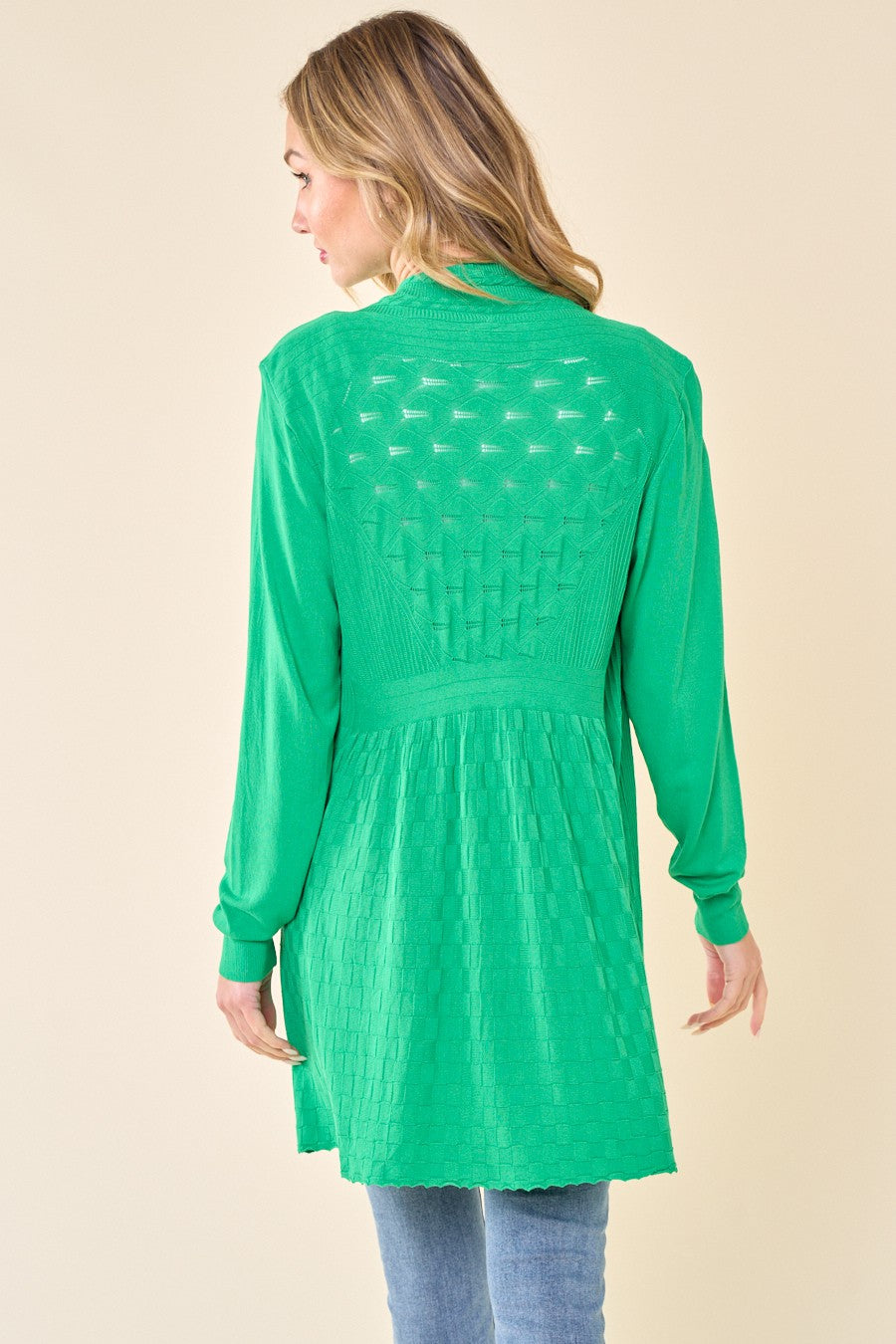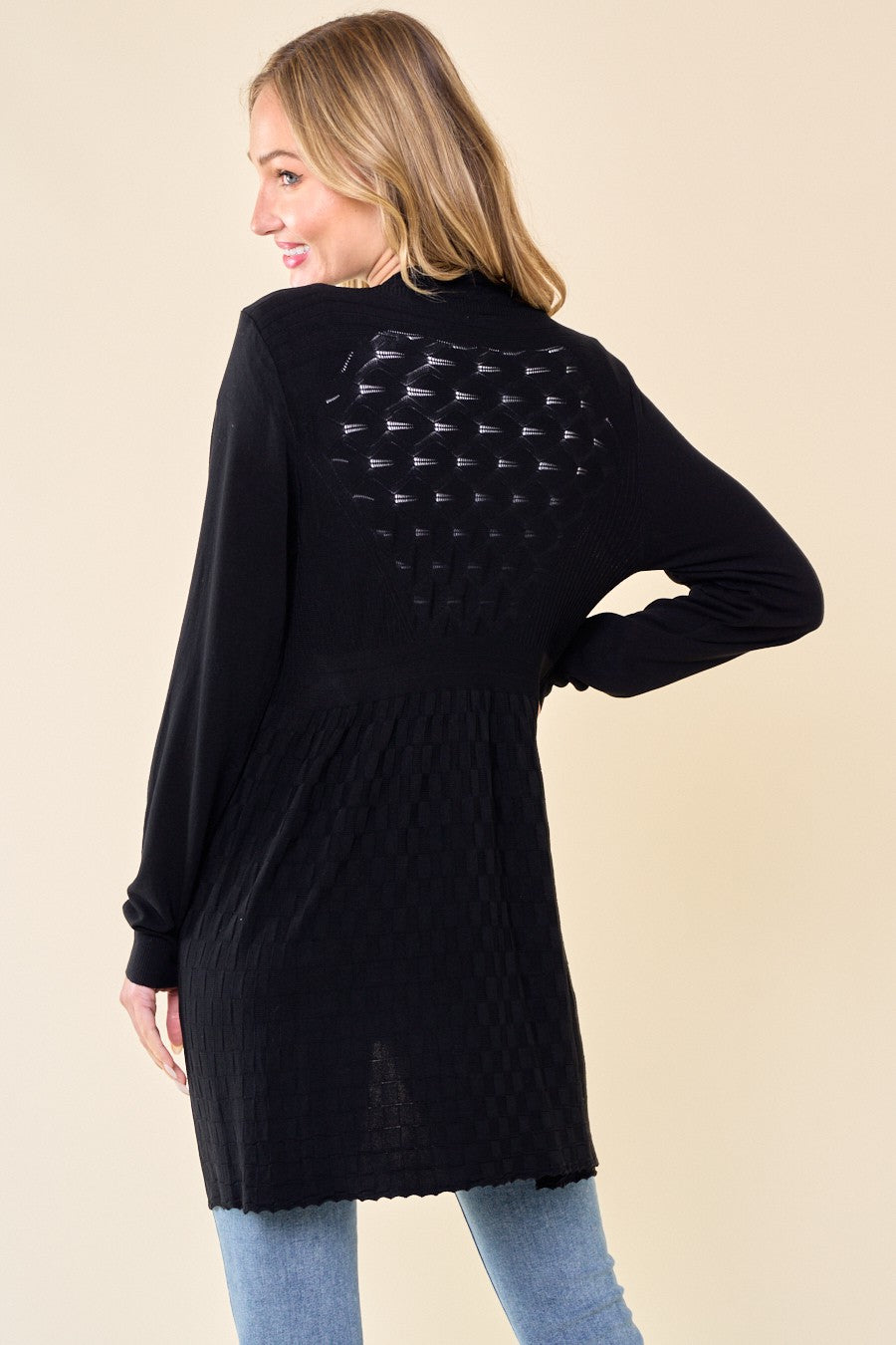 The soft drape and open front design make it a comfortable and flattering choice for all body types.